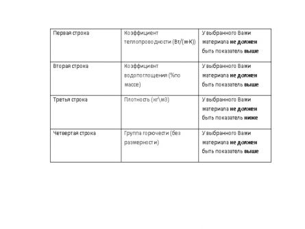 • Перед покупкой. Попросите данные основных технических характеристик выбранных материалов. Сравните их с таблицей1. Значения характеристик не должны выходить за рамки рекомендуемых (таблица2).
